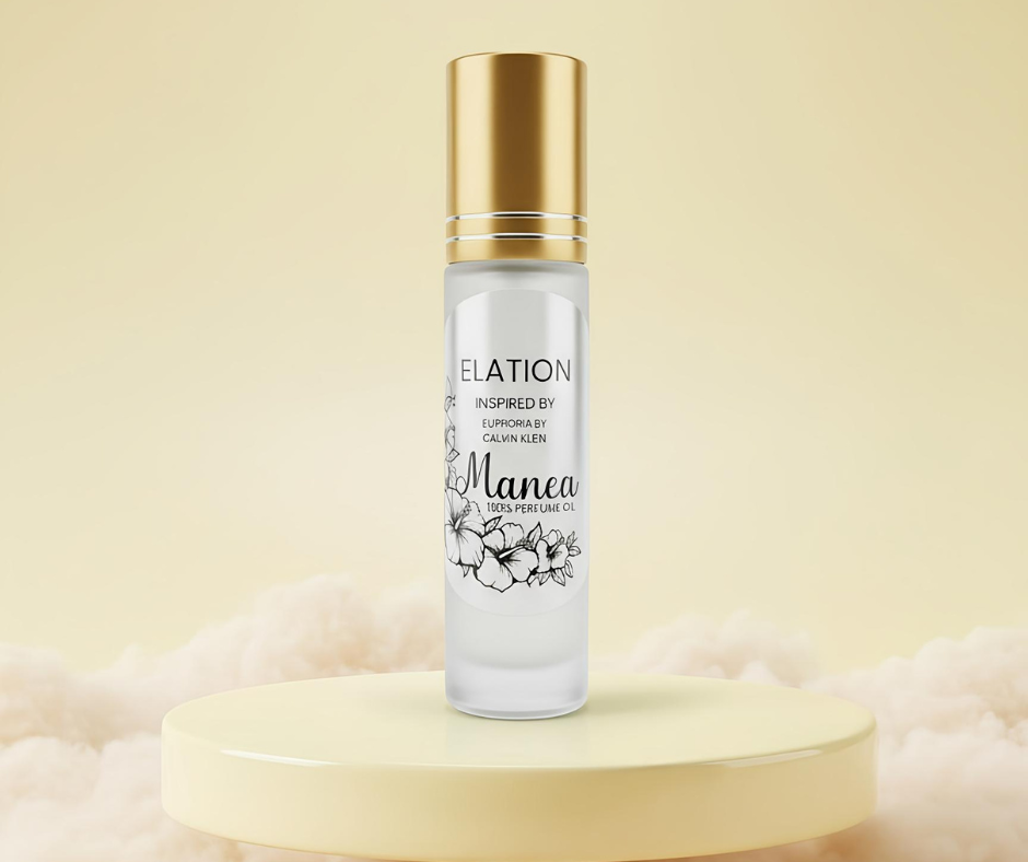 Dive into the thrill of Elation, a fragrance that captures the essence of confidence and desire. Bursting with juicy pomegranate and persimmon, balanced by lush lotus blossom and black orchid, this scent wraps you in the warmth of amber, mahogany woods, and creamy undertones. Bold, mysterious, and irresistibly addictive — roll it on and let your energy light up the room.